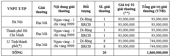 Tổng giá trị giải thưởng: 1,860,000,000 đồng