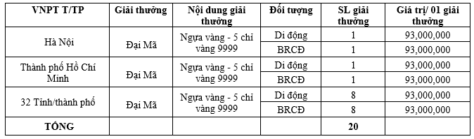 - Địa điểm trao thưởng: VNPT VinaPhone sẽ thực hiện trao thưởng tại các Viễn thông Tỉnh, thành phố (tùy thuộc vào địa phương của khách hàng trúng thưởng).