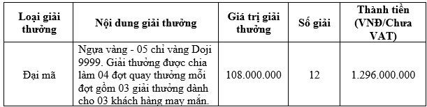 - Tổng số mã dự thưởng dự tính phát hành trong thời gian khuyến mại: Dự kiến 50 nghìn mã dự thưởng.
