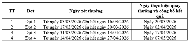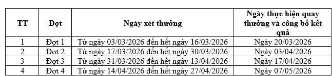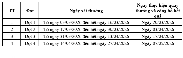 - Thời hạn kết thúc trao thưởng: Thời hạn cuối cùng Viễn thông Tỉnh/TP có trách nhiệm trao thưởng cho khách hàng trúng thưởng vào ngày 11/06/2026.